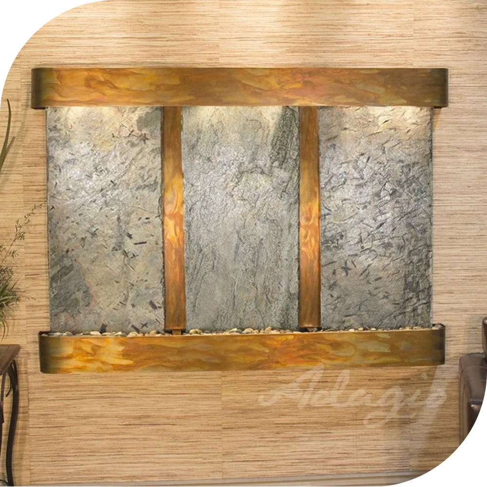 View full detailsAdagio Olympus Falls 54"H x 75"W Indoor Wall Fountain The Olympus Falls features three elegant panels, creating a captivating indoor water feature...