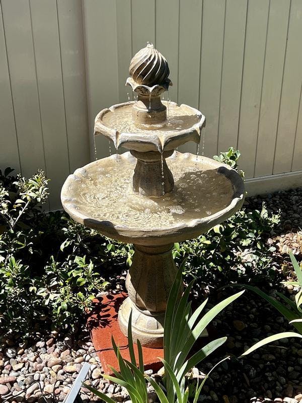 This fountain looks even better in person! The rainfall effect is calming, and the water flow is smooth and quiet. It instantly became the highlight of our backyard patio. Solid build and easy to maintain.