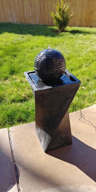 This fountain looks even better in person! The rainfall effect is calming, and the water flow is smooth and quiet. It instantly became the highlight of our backyard patio. Solid build and easy to maintain.