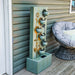 This weather-resistant galvanized steel patio waterfall fountain features a patina green finish with gold accents, cascading water, and warm LED lights. It creates a calming ambiance indoors or outdoors, making it a versatile focal point for any space. At 48.5 inches tall, it adds tranquility to patios, decks, or even transforms a corner into an indoor oasis.