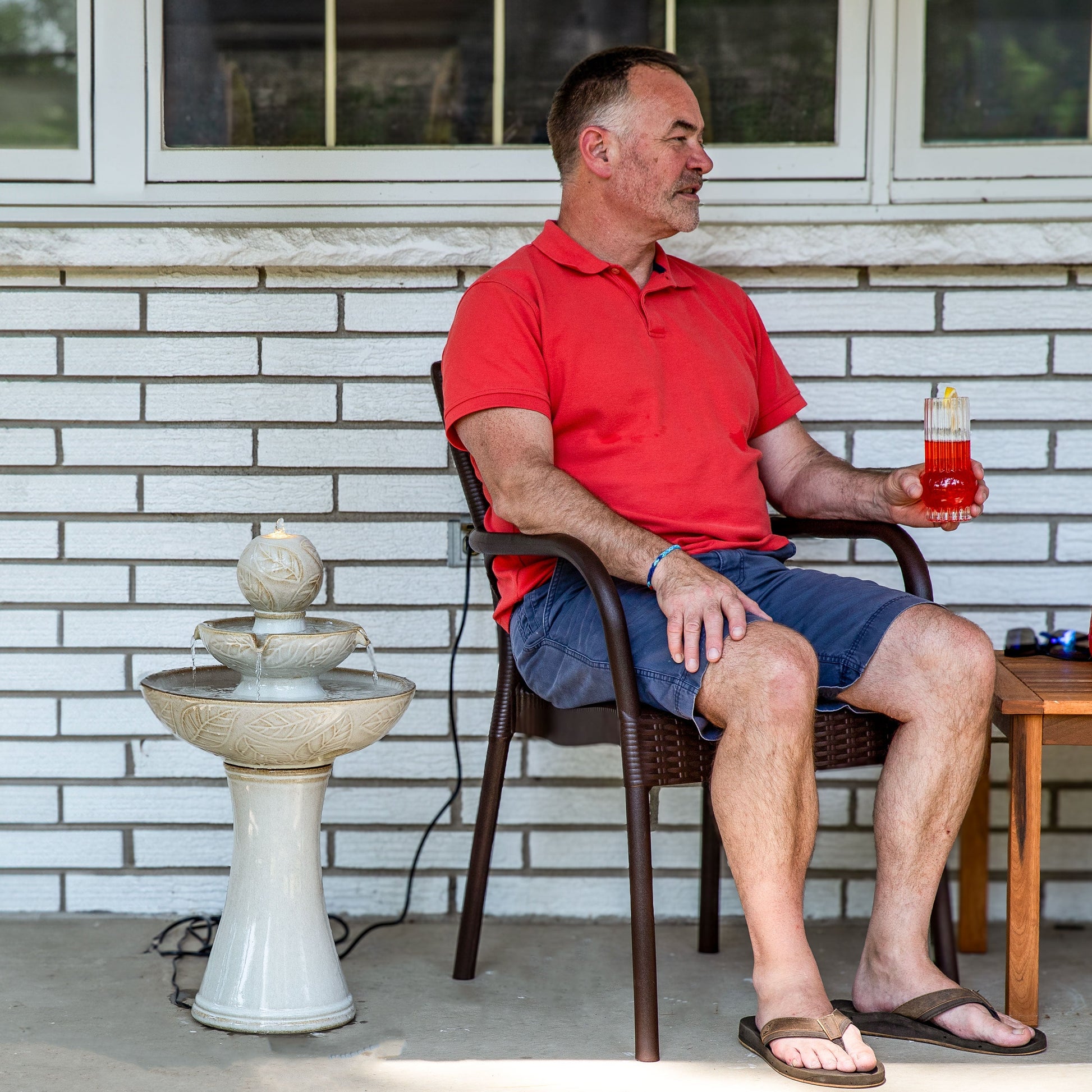 - Light Up The Night: Enjoy the beauty of this outdoor patio fountain even after the sun sets. It features 6 LEDs built into the topper to create a cozy glow.