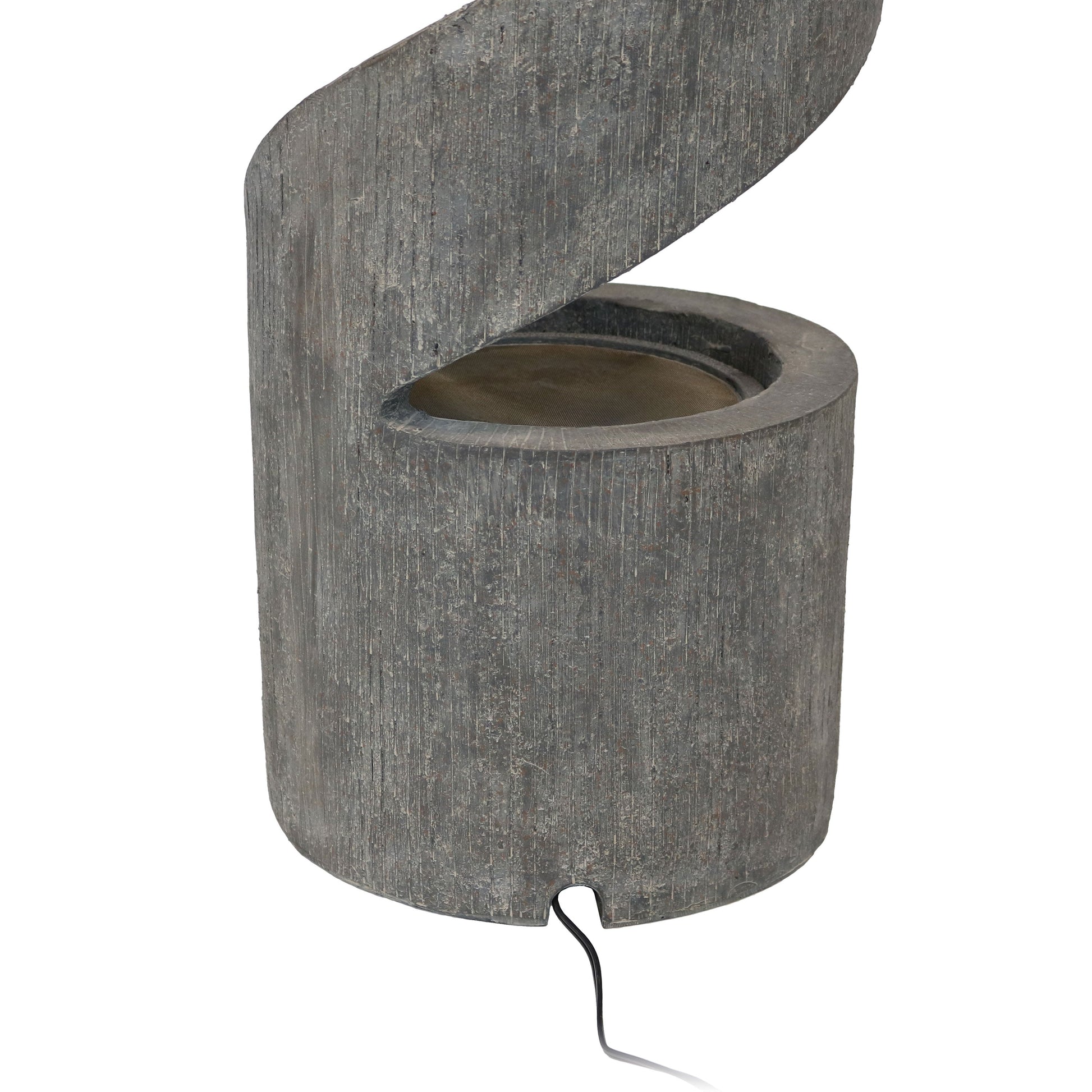 Bring contemporary style to your space with this spiraling outdoor water fountain. Made of dependable polyresin, this outdoor water fountain will provide you with many years of beauty and performance. Enjoy the calming rain shower sounds as water gracefully pours down from the top and hits the bottom to make a rain-like sound. No complicated plumbing is required, simply fill with water, plug in, and enjoy.